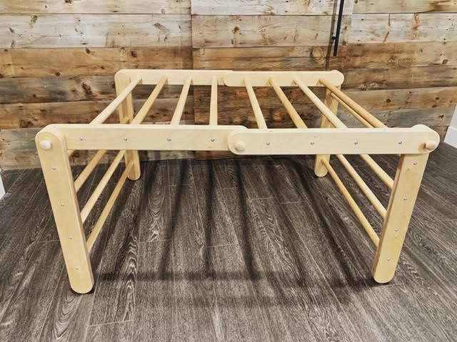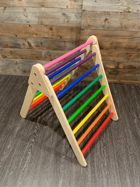 - Pikler Triangle, Rocker, slide/climbing board Our big gift for our little babe is something that I have been wanting to get him for the past three months. It is a bit of an investment but it can be used from birth if you were to get it then. It is a rocker/slide combo. If you’re little one is like ours they are climbing all over the place. I wanted a safe place for him to do this and the rocker/slide combo seemed like the perfect fit! I have friends who rave about this! The rocker can be used when they are younger as a rocker, or even when they are infants as an activity gym by attaching things to the top. Also I plan to add a pikler triangle to the set at Christmas time! I also love the fact that you can keep adding on as future presents! We got ours from Merstorf Customs they were a breeze to work with. Their prices are so affordable and the returning customers get a 10% discount. This is awesome for us as like I said this is just the beginning for us! We plan on continuing to add on! Also they are local and who doesn’t love supporting local! They will ship anywhere within Canada . Below are some photos of what you can get from them! Visit them at https://www.facebook.com/merstorfcustoms/